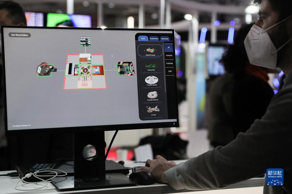 3月1日,一家西班牙展商的工作人员在西班牙巴塞罗那2022世界移动通信大会上展示创造“元宇宙”场景的过程。