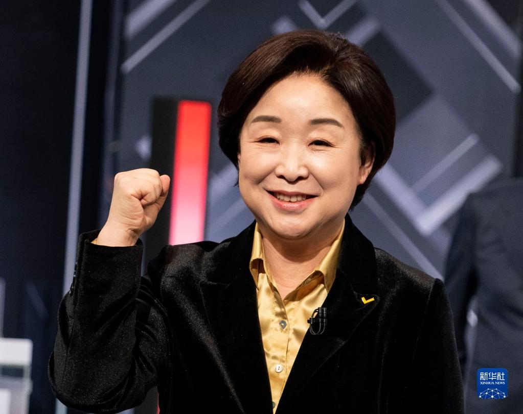 3月2日,在韩国首尔,韩国正义党候选人沈相奵参加电视辩论。