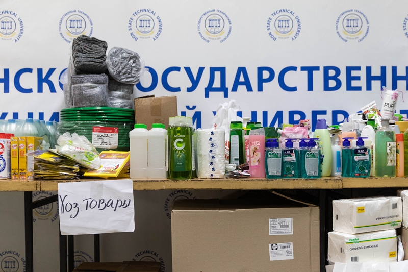 ↑这是3月2日在俄罗斯顿河畔罗斯托夫的一所大学内拍摄的当地居民为来自顿巴斯地区的民众捐赠的物资。