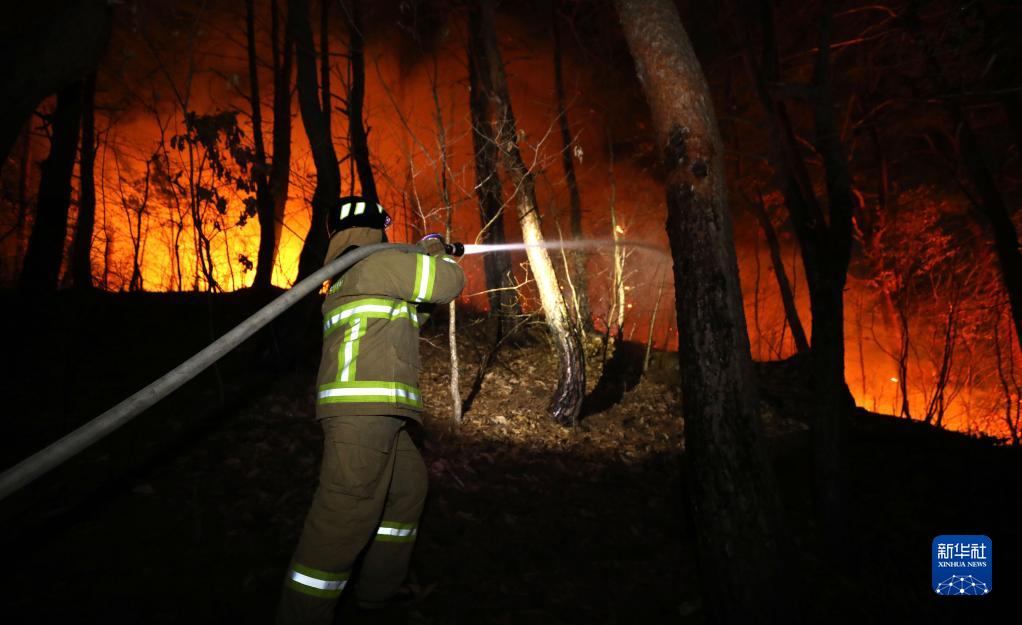3月4日,消防员在韩国庆尚北道灭火。