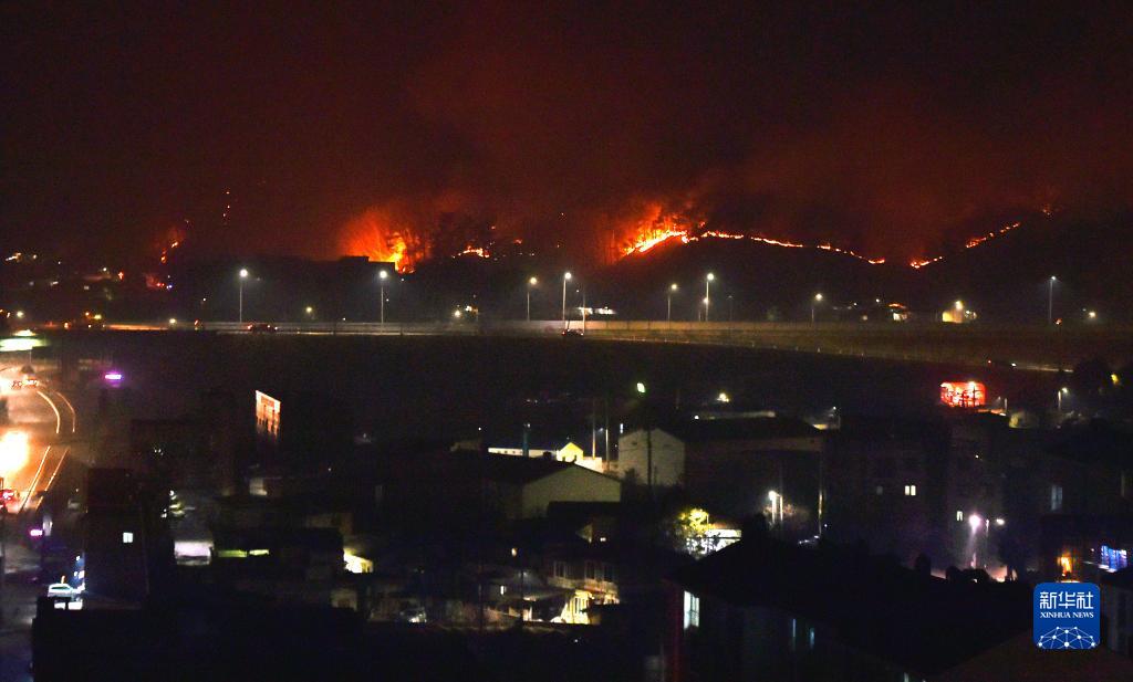 这是3月4日在韩国庆尚北道拍摄的山火。