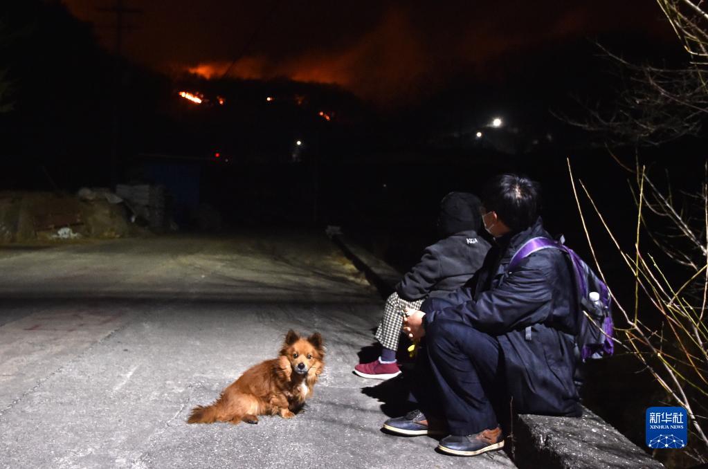 3月4日,人们在韩国庆尚北道望向山火。