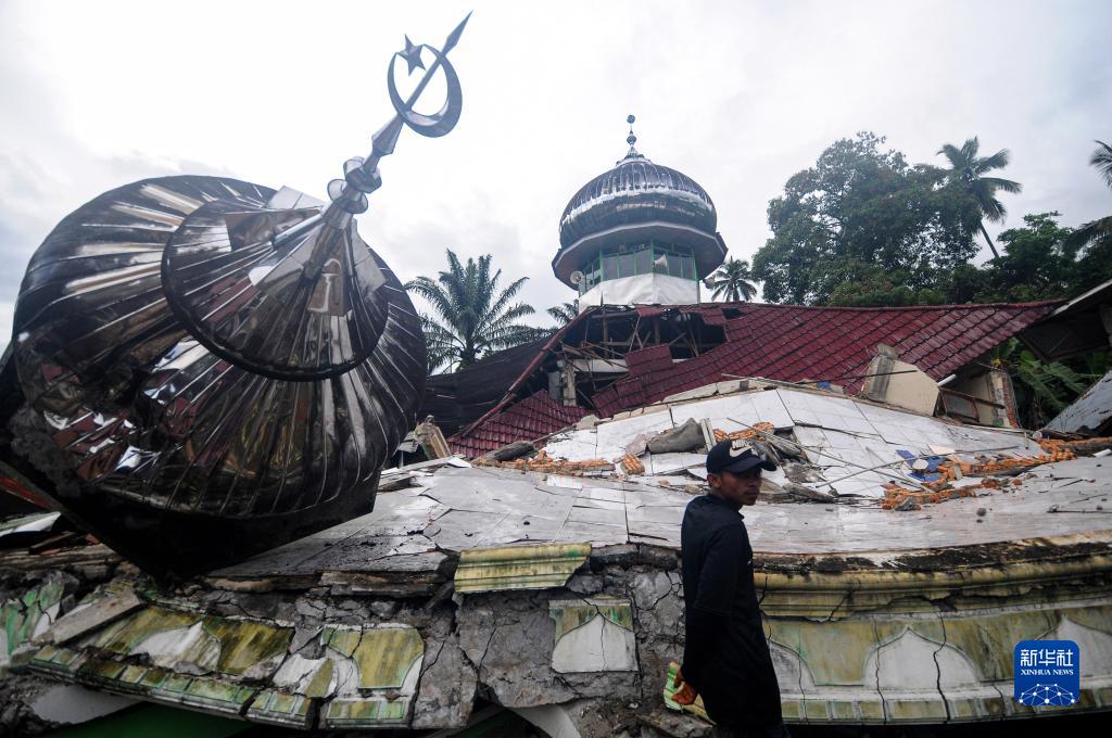 2月25日,在印度尼西亚西苏门答腊省,一名男子走过地震中受损的房屋。