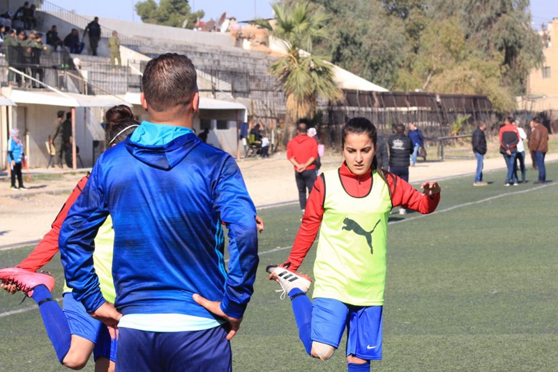 这是2020年12月3日,女子足球队员在叙利亚哈塞克参加比赛。新华社发