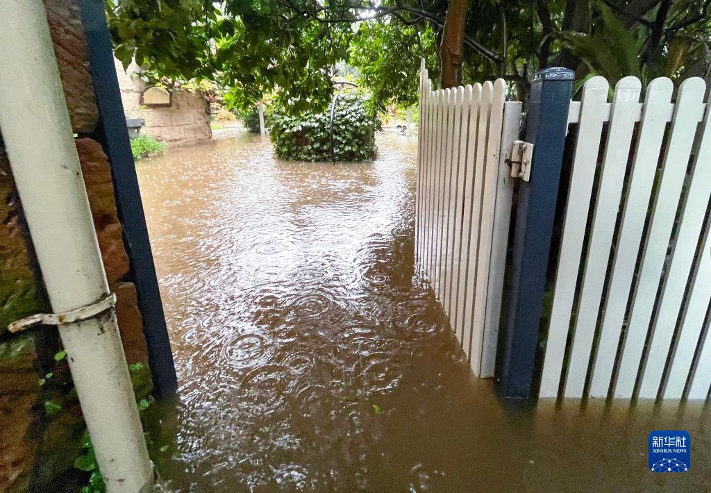 这是3月8日在澳大利亚新南威尔士州温莎地区拍摄的积水的居民院落。