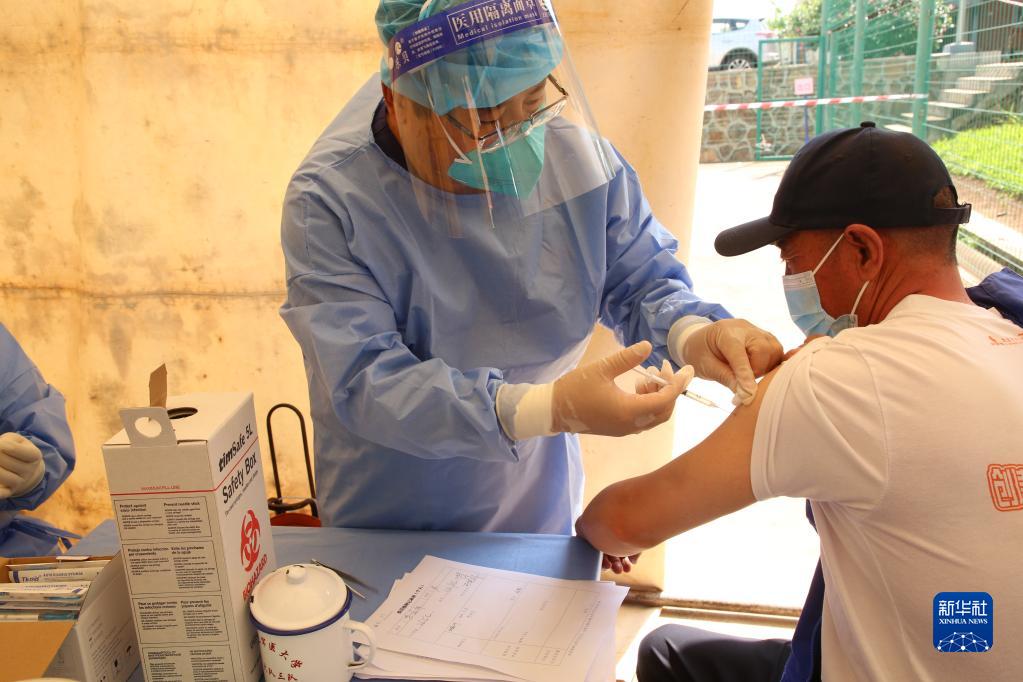 “春苗行动”加强针接种8日在卢旺达首都基加利正式启动,中国援卢医疗队当天为约100名在卢中资企业员工接种了国产新冠疫苗加强针。