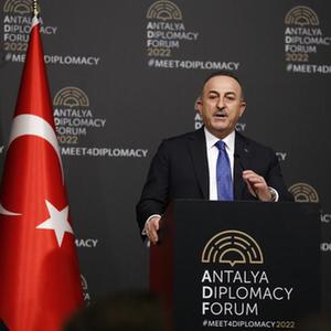 3月10日,在土耳其安塔利亚,乌克兰外长库列巴在与俄罗斯外长拉夫罗夫(未在画面中)会谈后召开新闻发布会。新华社发