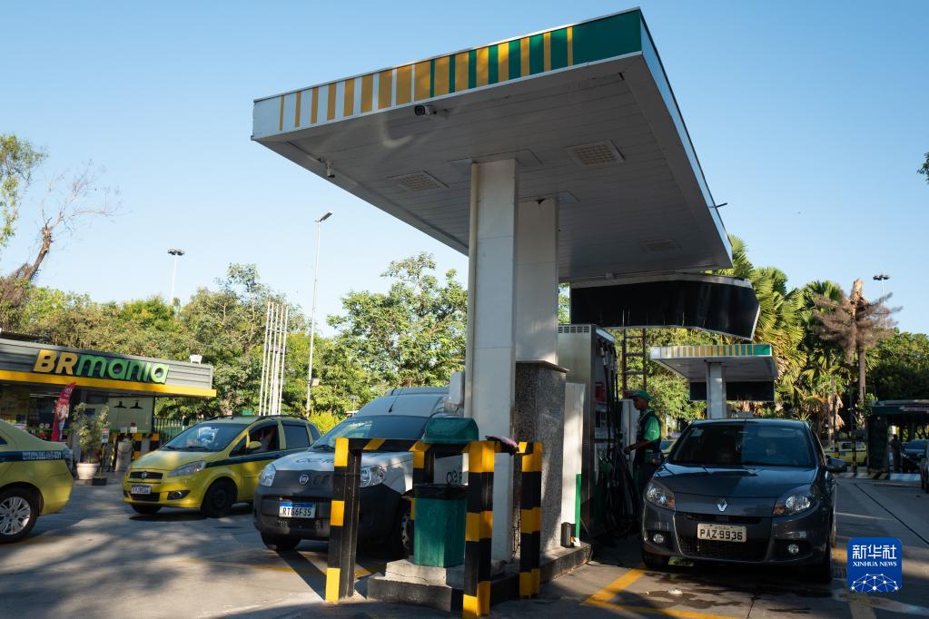 3月10日,车辆在巴西里约热内卢一处加油站加油。
