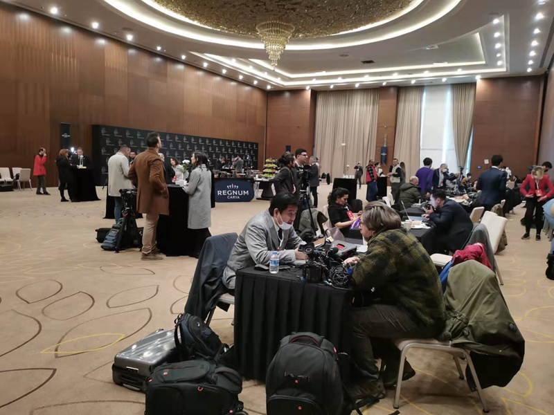 3月10日,在土耳其安塔利亚,记者准备报道俄乌外长会面。新华社记者 李振北 摄