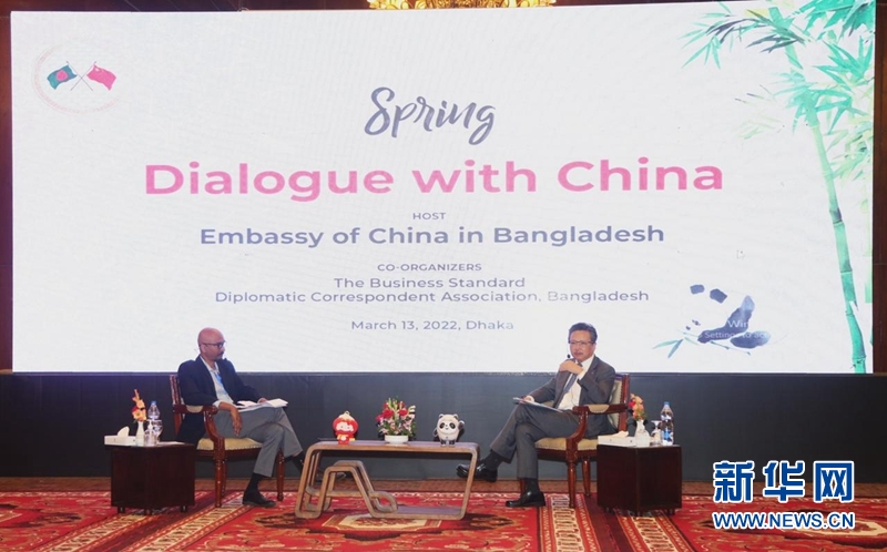 新华网达卡3月14日电(记者刘春涛)中国驻孟加拉国大使李极明3月13日出席“相约初春·对话中国”活动,就中孟关系和国际热点问题同媒体进行交流。本次活动由中国驻孟加拉国大使馆主办,孟加拉国当地报纸《商业标准报》协办。《商业标准报》主编伊纳姆·艾哈迈德主持对话,来自《每日星报》《每日太阳报》等孟主流媒体的约60名记者参与交流。