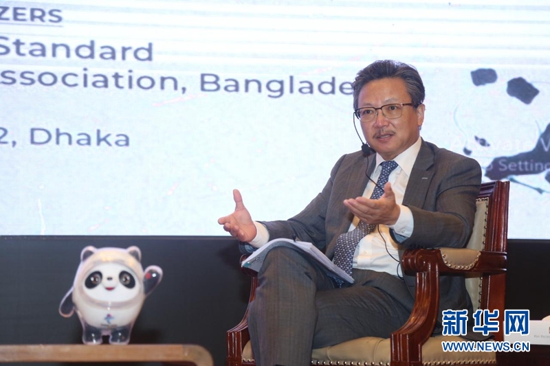 中国驻孟加拉国大使李极明在活动现场发言。新华社 萨利姆 摄