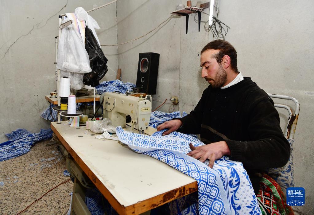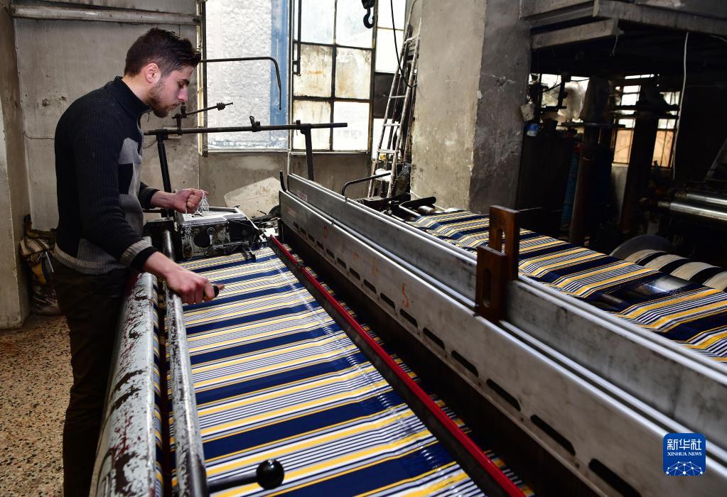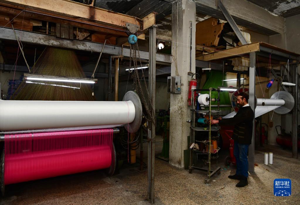 53岁的萨利赫·穆泽耶克是当地一家纺织厂的厂主。因战火和制裁,他工厂的销量大不如前,目前只能维持最低产能。“只有伊拉克和黎巴嫩(从我们)进口一些(产品)。局势很艰难,生计受到很大影响。”萨利赫说,制裁之下,购买棉线等原材料遇到困难,织布机零件几乎买不到。