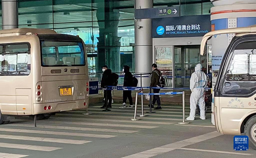 3月16日,乘坐临时航班安全抵达大连周水子国际机场的中国公民准备前往隔离酒店。当日下午2时32分,第十五架接返自乌克兰撤离中国公民临时航班安全抵达大连。 新华社发 (大连机场提供)