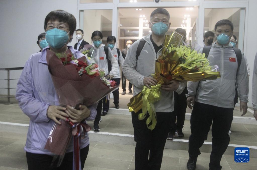3月16日,中国援柬埔寨中医抗疫专家组抵达柬埔寨首都金边。新华社发(批隆 摄)