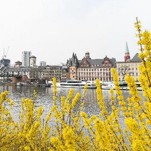 近日,德国法兰克福市气温逐渐回暖,美因河畔的鲜花次第开放。