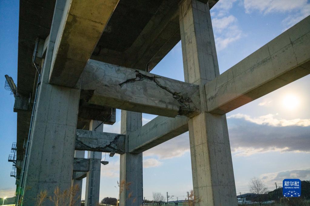 这是3月17日在日本宫城县白石市拍摄的因地震开裂的新干线高架桥。