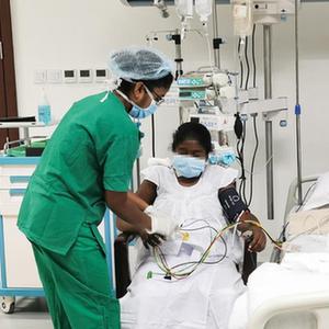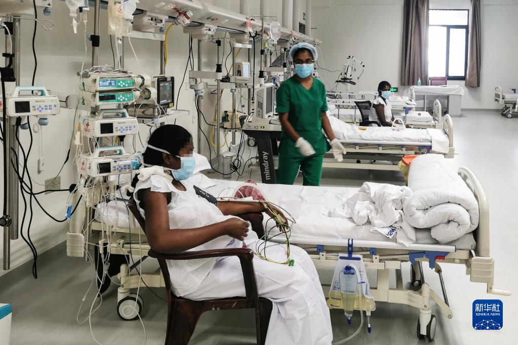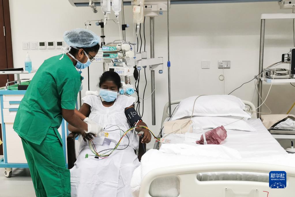 3月17日,在斯里兰卡波隆纳鲁沃,医护人员在中斯友好医院外科ICU病房护理接受了活体肾脏移植手术的患者。新华社发(陕西建工集团供图)