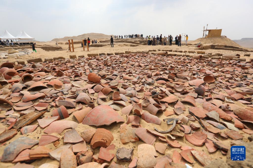 这是3月19日在埃及首都开罗以南的塞加拉地区拍摄的出土陶片。