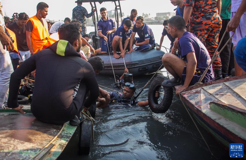 3月20日,潜水员在孟加拉国纳拉扬甘杰开展水下搜救工作。