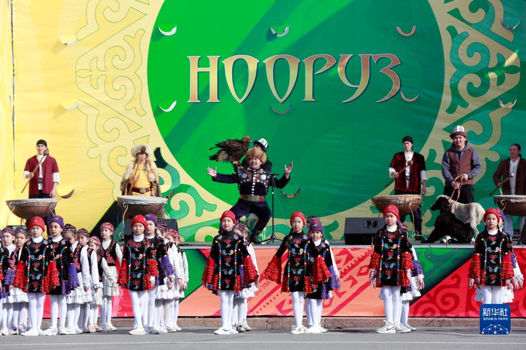 3月21日,人们在吉尔吉斯斯坦首都比什凯克阿拉套广场举行的纳乌鲁斯节庆典上表演节目。
