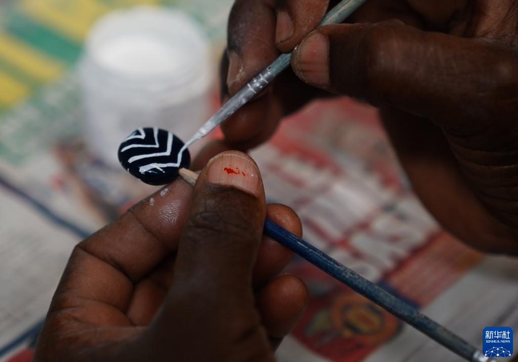 3月21日,女员工在肯尼亚内罗毕Kazuri手工作坊工作。