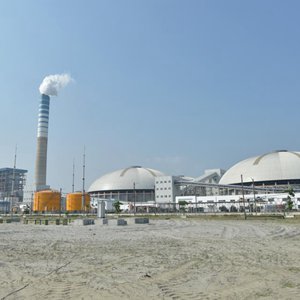 这是3月21日在孟加拉国南部博杜阿卡利县拍摄的帕亚拉2×660兆瓦超超临界燃煤电站。新华社发
