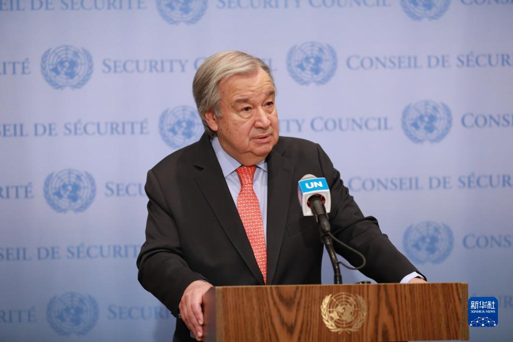 3月22日,在位于纽约的联合国总部,联合国秘书长古特雷斯举行记者会。