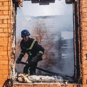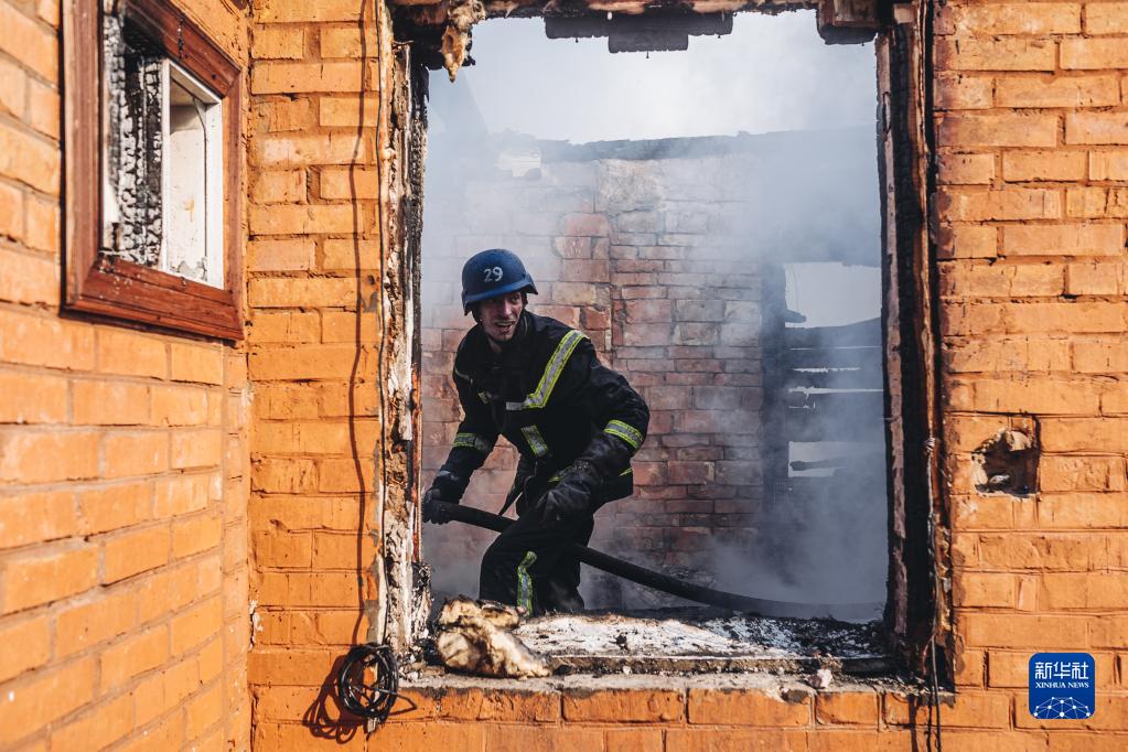 3月23日,消防员在乌克兰基辅市一处受损的房屋内工作。