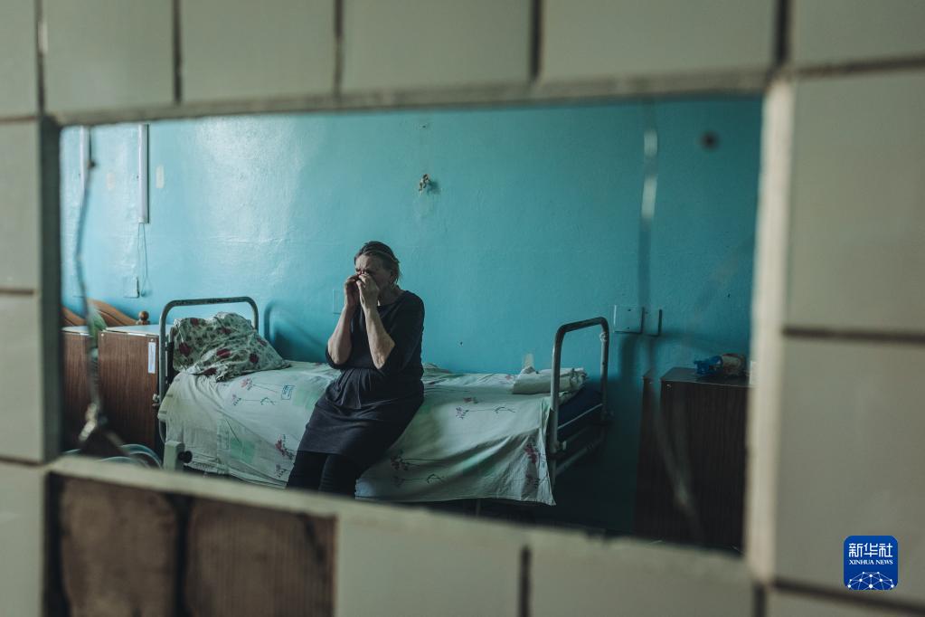 3月23日,一名女子坐在乌克兰基辅州布罗伐利市医院的房间内。