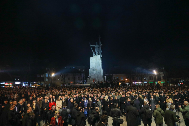 3月24日,在塞尔维亚中部城市克拉列沃,数千民众聚集在市中心塞尔维亚勇士广场,出席悼念北约轰炸南斯拉夫联盟共和国遇难者仪式。新华社记者石中玉摄
