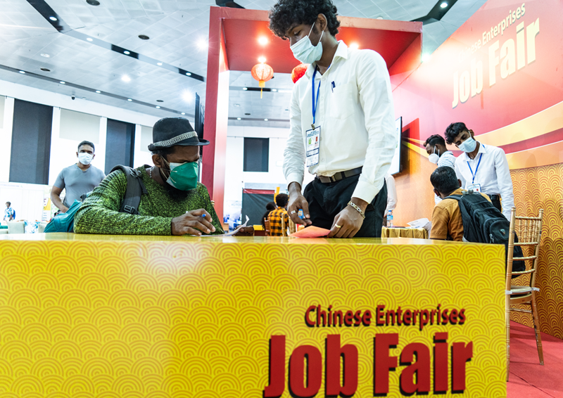 招聘会由斯里兰卡中国企业商会(简称“中商会”)与斯里兰卡建筑业协会联合举办,吸引了近700名求职者前来应聘中企提供的近百个当地就业岗位。