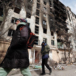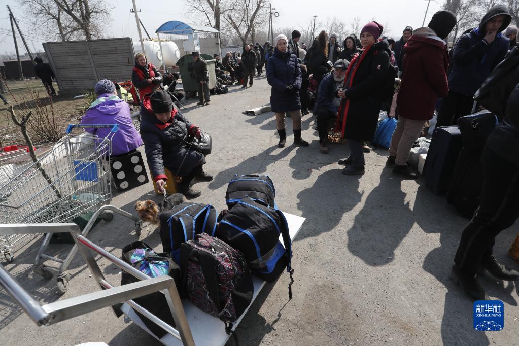 3月24日,携带行李的人们候车准备撤离马里乌波尔。