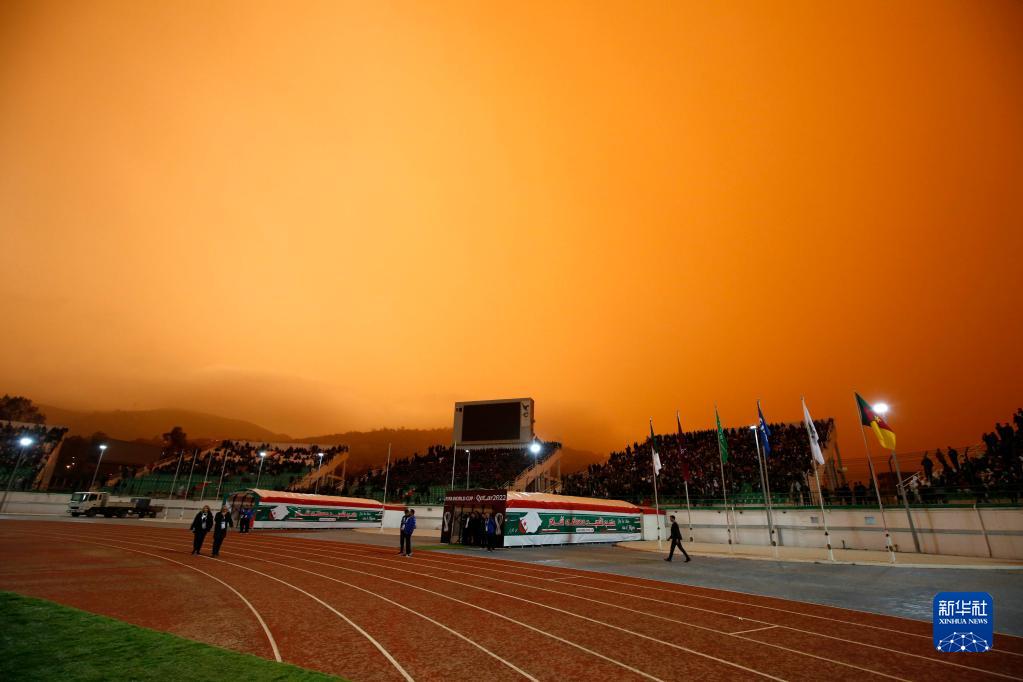 3月29日,在阿尔及利亚卜利达,一处球场被笼罩在沙尘中。