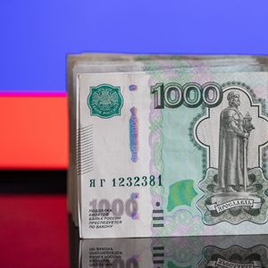 这是3月24日在俄罗斯首都莫斯科拍摄的卢布钞票。新华社记者白雪骐摄