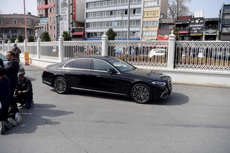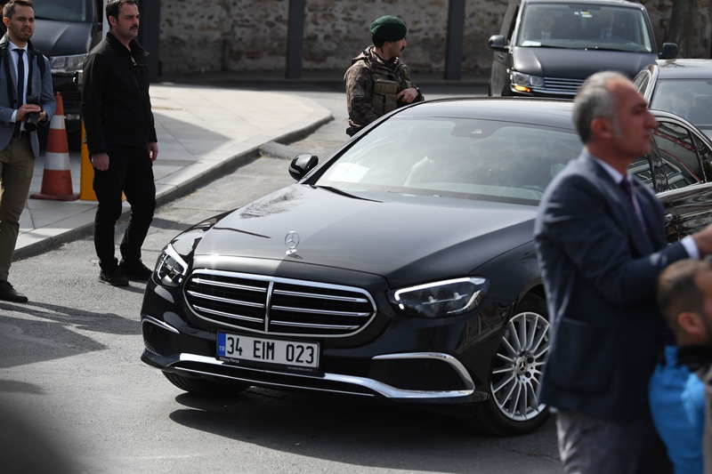 ↑3月29日,在土耳其伊斯坦布尔,俄罗斯代表团车队离开会谈现场。新华社记者 沙达提 摄