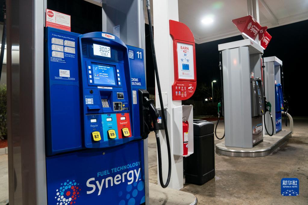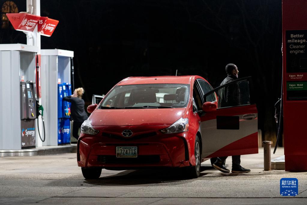 3月31日,人们在美国弗吉尼亚州阿灵顿一处加油站加油。新华社记者 刘杰 摄