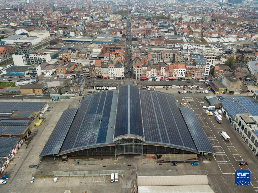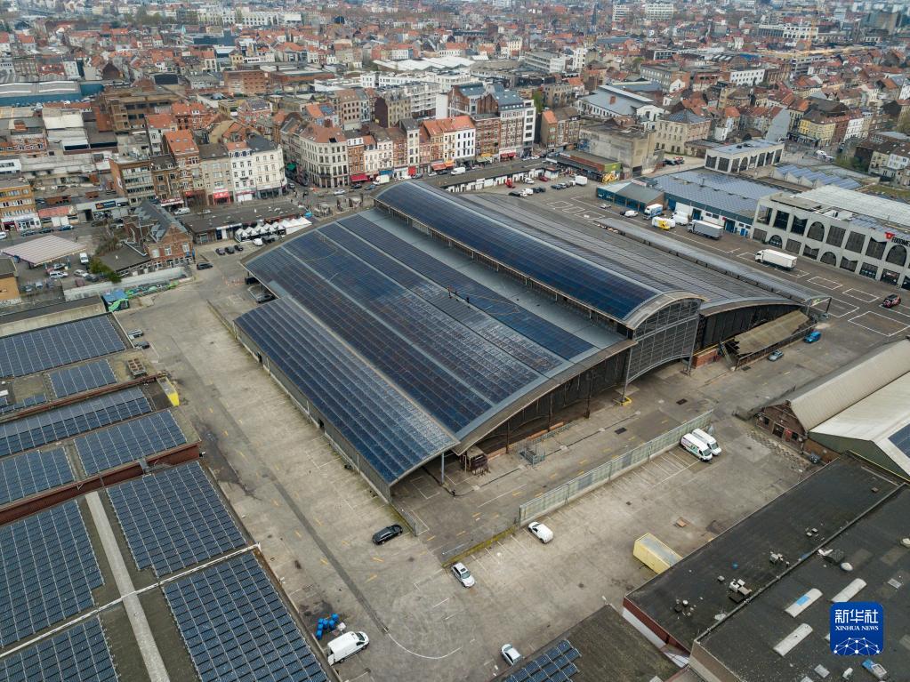 这是3月29日在比利时布鲁塞尔拍摄的安德莱赫特屠宰场棚顶(无人机照片)。新华社记者 张铖 摄