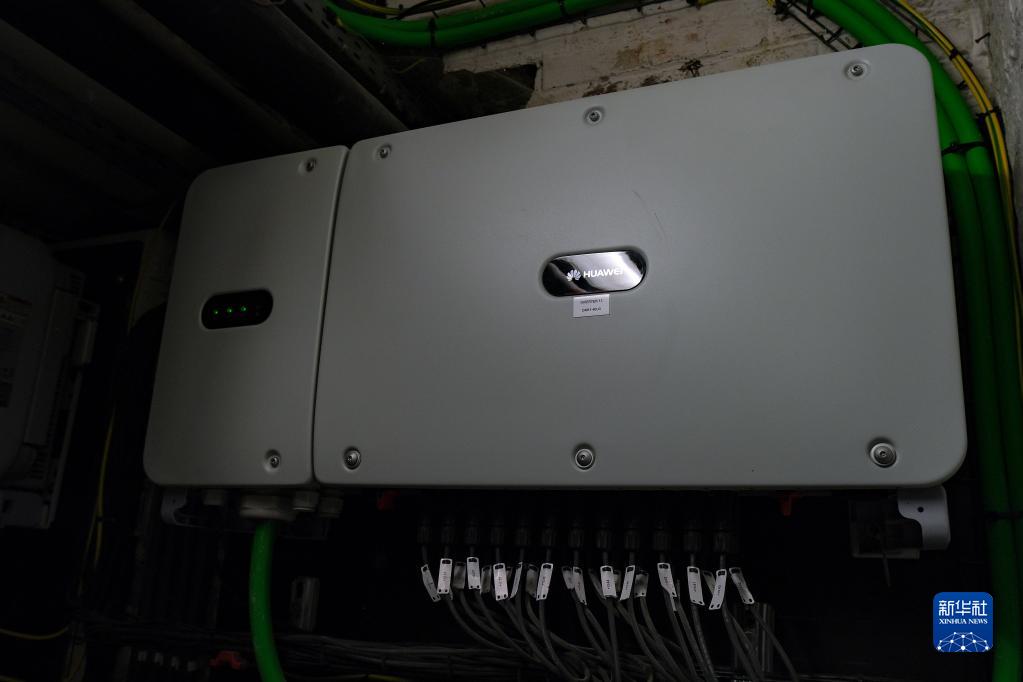 这是3月29日在比利时布鲁塞尔安德莱赫特屠宰场内拍摄的华为公司生产的逆变器。新华社记者 张铖 摄