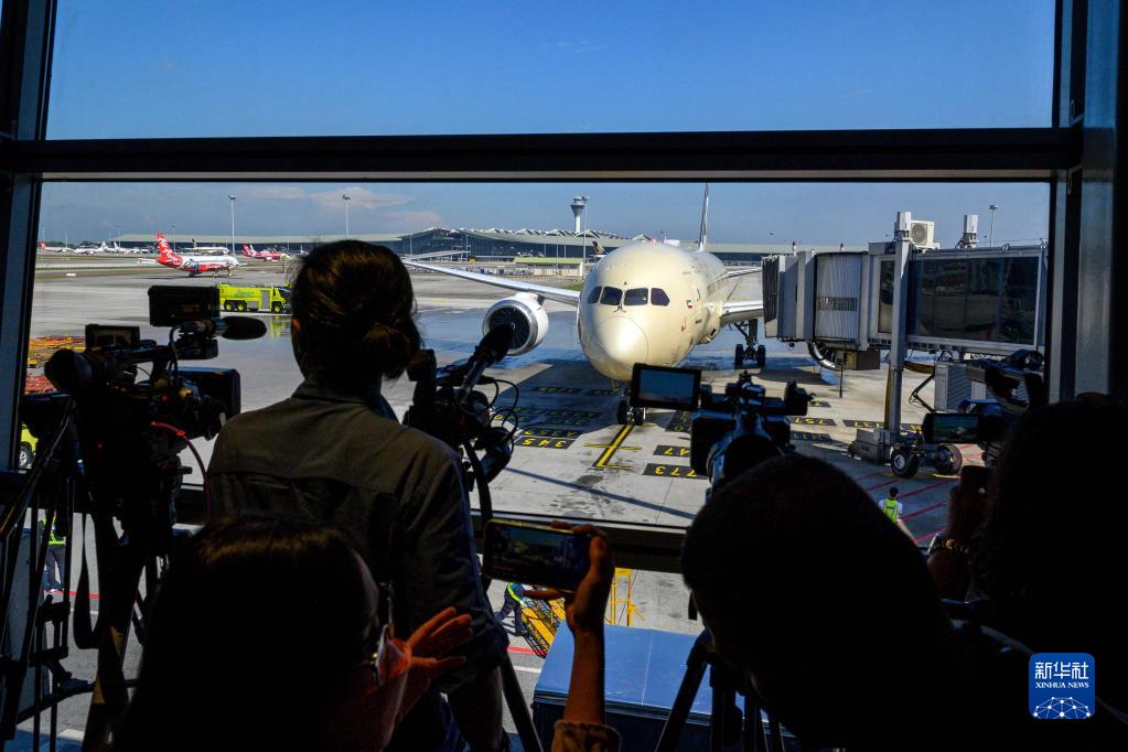 4月1日,一架阿联酋阿提哈德航空公司客机抵达马来西亚吉隆坡国际机场。