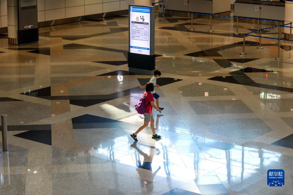 4月1日,旅客走在马来西亚吉隆坡国际机场出发大厅。