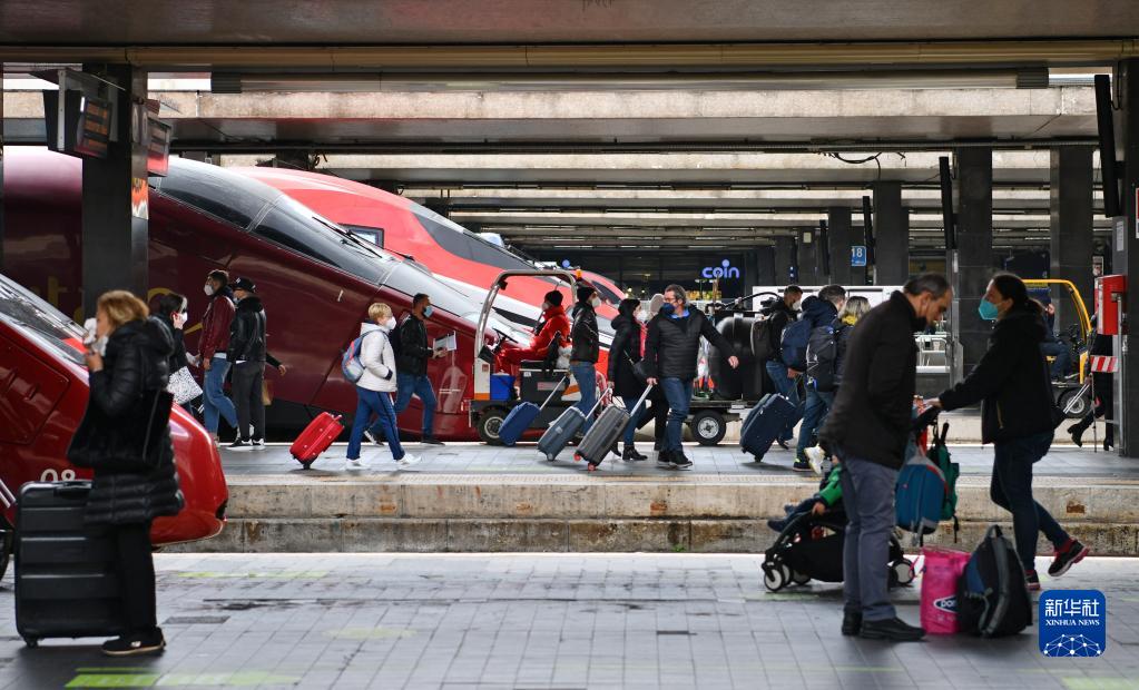 4月1日,旅客走在意大利罗马特米尼火车站的站台上。