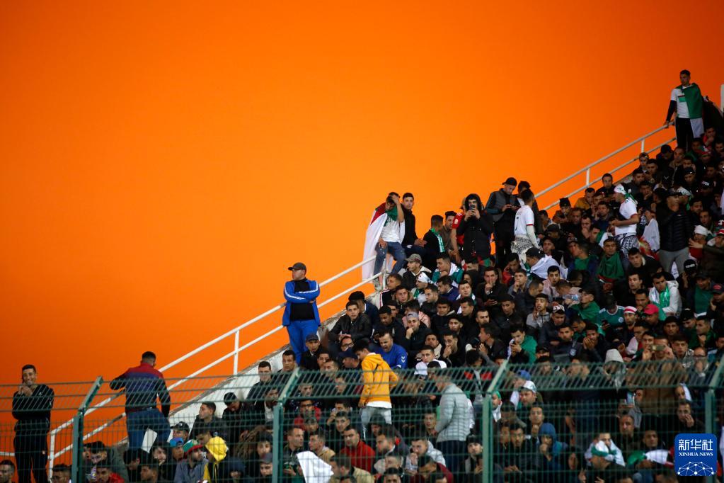 3月29日,在阿尔及利亚卜利达,球场上的观众在沙尘中等待比赛开始。
