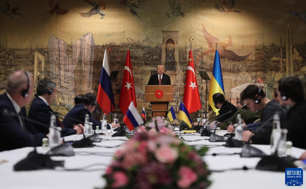 3月29日,俄罗斯和乌克兰谈判代表在土耳其伊斯坦布尔多尔玛巴赫切宫总统府开启新一轮谈判。土总统埃尔多安在和谈开始前会见了双方代表并表示愿促成俄乌总统在土会面。