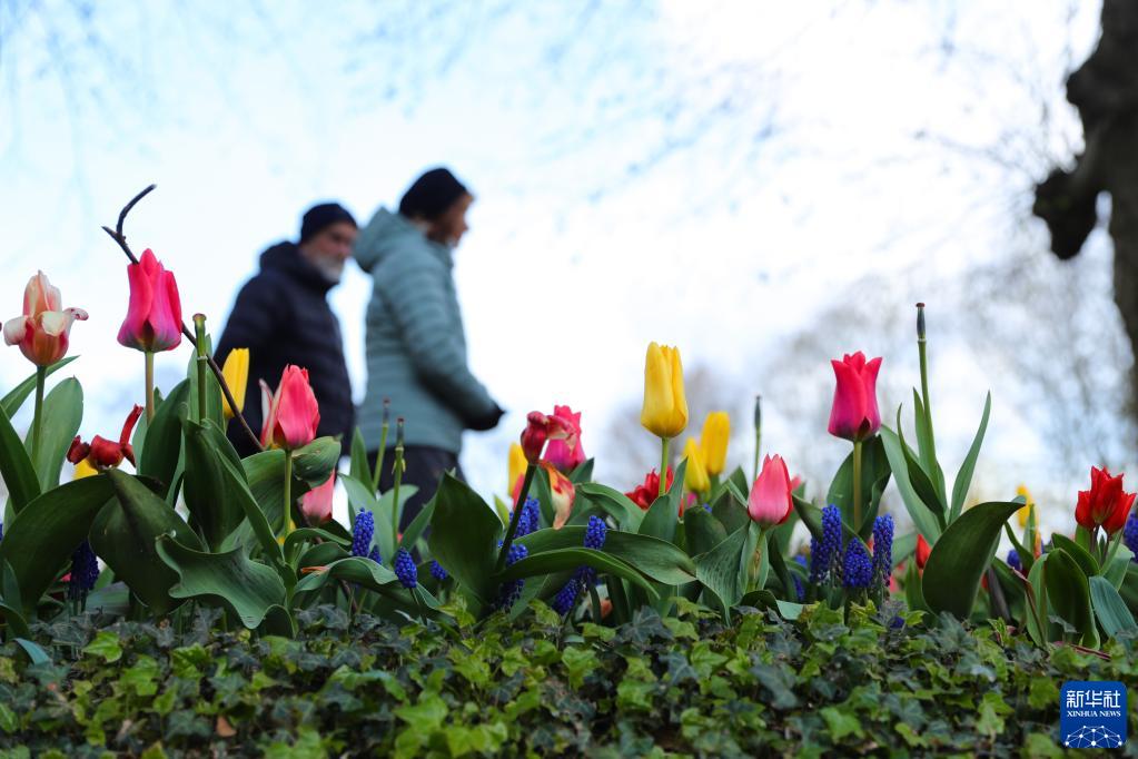 4月2日,游客在比利时布鲁塞尔市以西的拜加登城堡园林漫步。