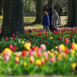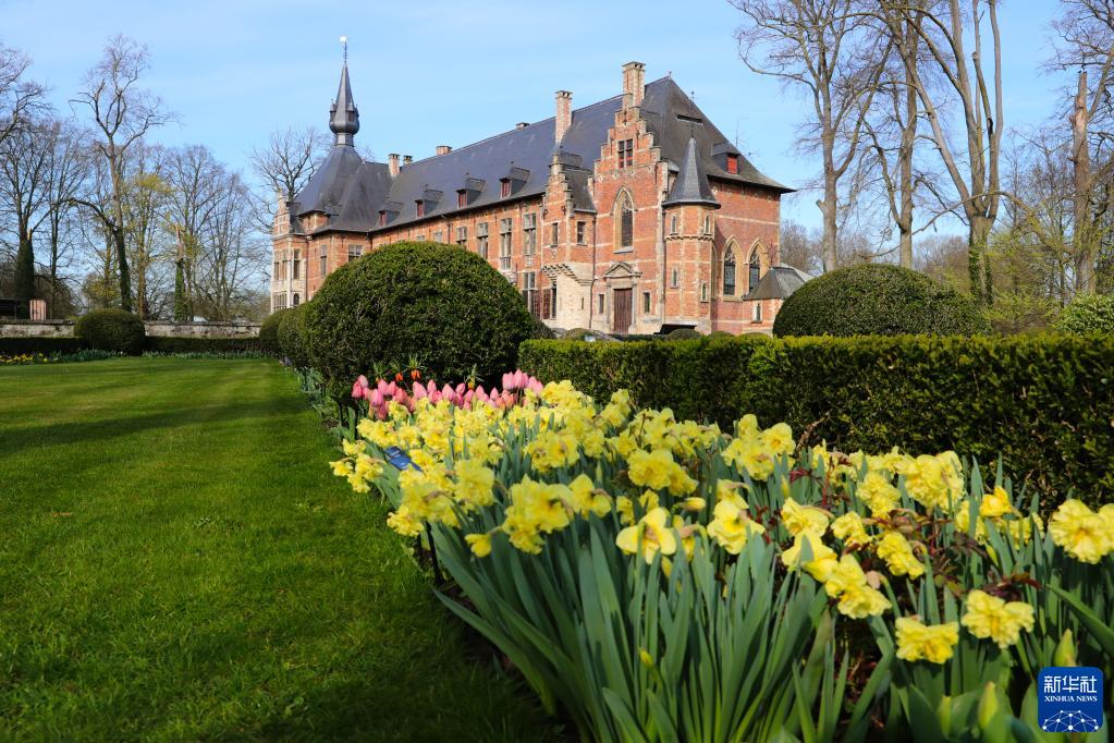 这是4月2日在比利时布鲁塞尔市以西的拜加登城堡园林拍摄的鲜花。