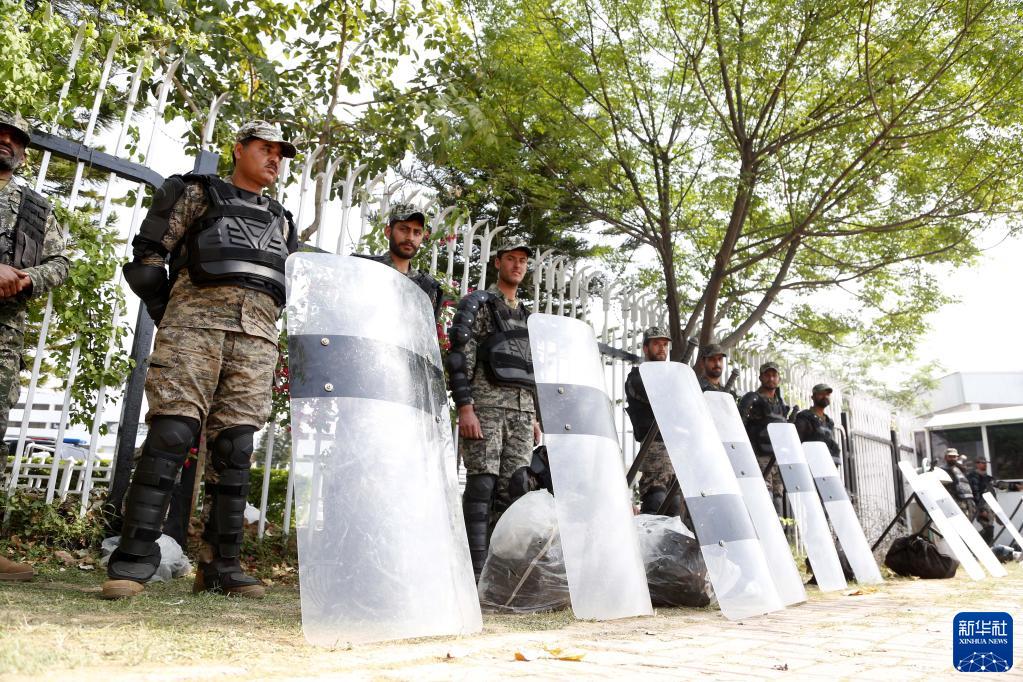 4月3日,安全人员在巴基斯坦首都伊斯兰堡的国民议会大楼外警戒。
