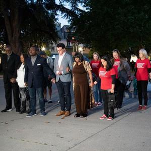 4月3日,人们聚集在美国加利福尼亚州首府萨克拉门托市中心的一处公园里参加守夜活动,悼念当天发生的枪击事件遇难者。