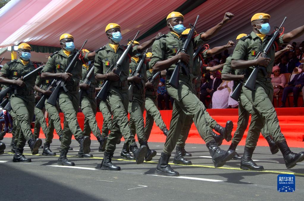 塞内加尔4日在首都达喀尔市中心的独立广场举行阅兵式,庆祝塞内加尔独立62周年。塞内加尔今年庆祝独立日的主题是“国防安全力量和国家韧性”,1800多名军人参加阅兵式。受新冠疫情影响,这是塞内加尔近三年来首次举办阅兵活动。