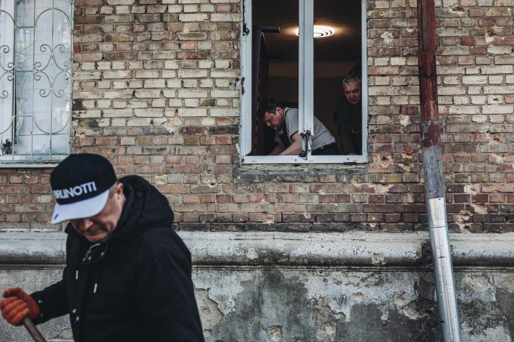 3月23日,居民在乌克兰基辅市清理受影响的房屋。新华社发(迭戈·埃雷拉摄)