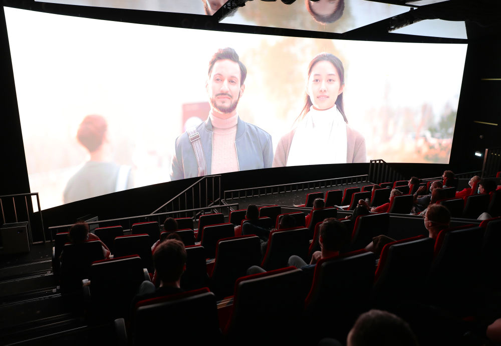 ↑1月11日,游客在迪拜世博会中国国家馆内观看电影。